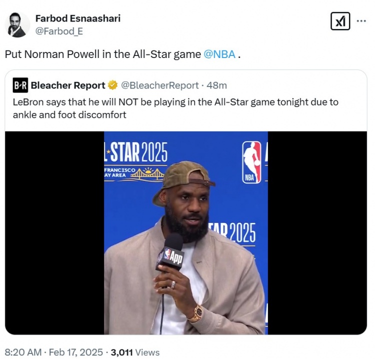 2025-02-17 16:43:59詹姆斯臨時缺陣!船記直接喊話NBA官方:讓鮑威爾進全明星吧