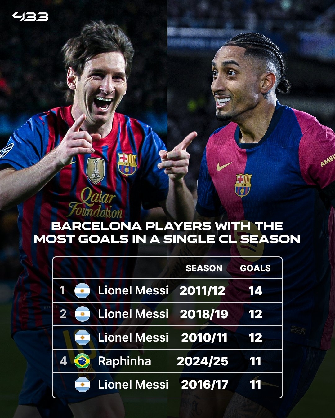2025-03-12 20:02:04巴薩隊(duì)史個(gè)人單賽季歐冠進(jìn)球數(shù):梅西14球居首,拉菲11球沖擊紀(jì)錄