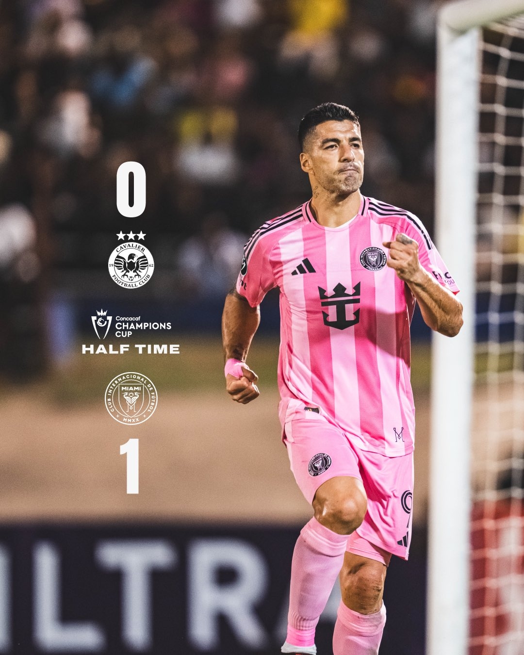 上半場比賽結束,邁阿密國際1-0卡瓦立爾。