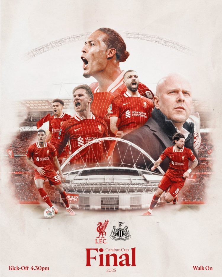 2025-03-16 20:01:42利物浦聯賽杯決賽海報:斯洛特、薩拉赫、范迪克等人出鏡