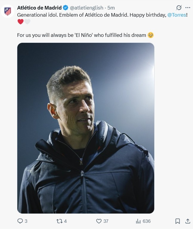 2025-03-20 20:02:21馬競官方祝托雷斯41歲生日快樂:一代偶像,你永遠(yuǎn)是我們的圣嬰