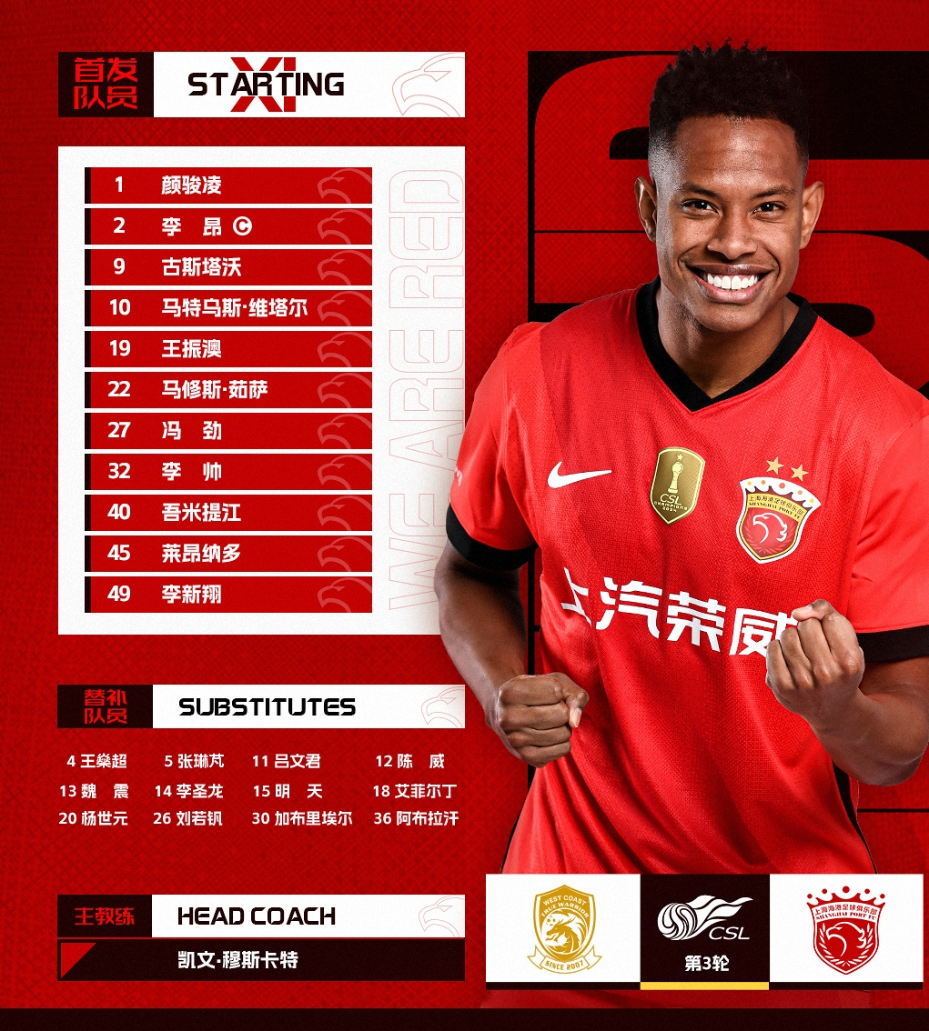 2025-03-28 20:01:39中超聯(lián)賽第3輪,青島西海岸vs上海海港,今日首發(fā)名單