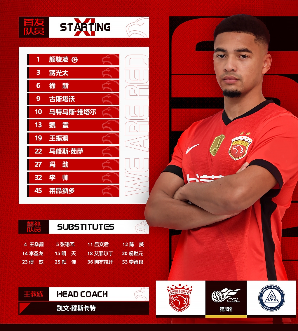 2025-02-23 20:01:102025中超聯(lián)第1輪,上海海港vs深圳新鵬城,今日首發(fā)名單