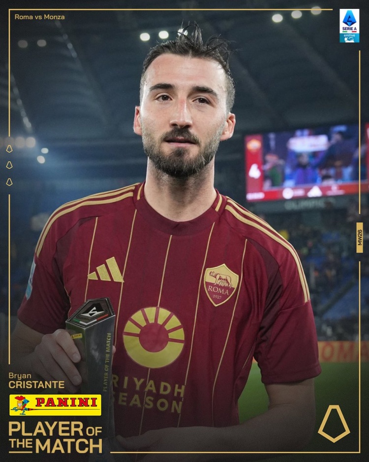 2025-02-25 08:00:20傳射建功!克里斯坦特當選羅馬4-0蒙扎全場最佳球員