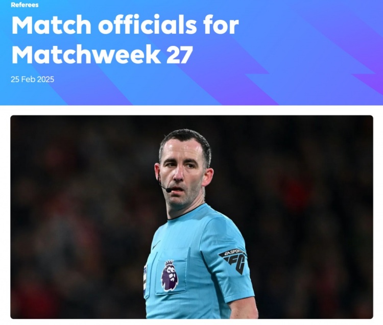 2025-02-26 00:01:41英超第27輪裁判:吉萊特執(zhí)法熱刺曼城 卡瓦納執(zhí)法利物浦紐卡