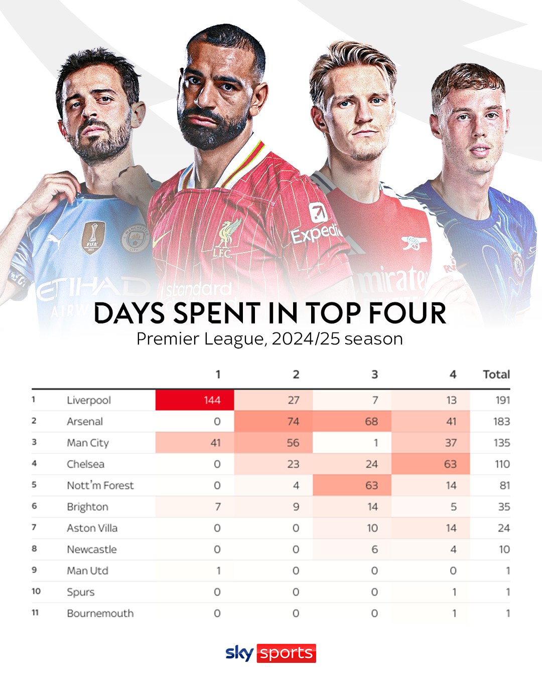 2025-02-26 04:00:23沒(méi)想到吧!利物浦已144天排名榜首 曼城41天 布萊頓7天 曼聯(lián)1天