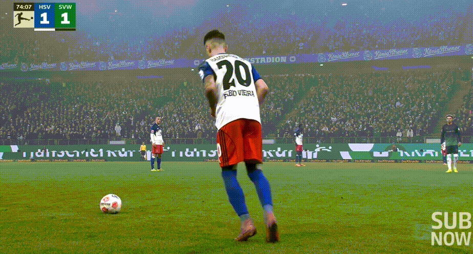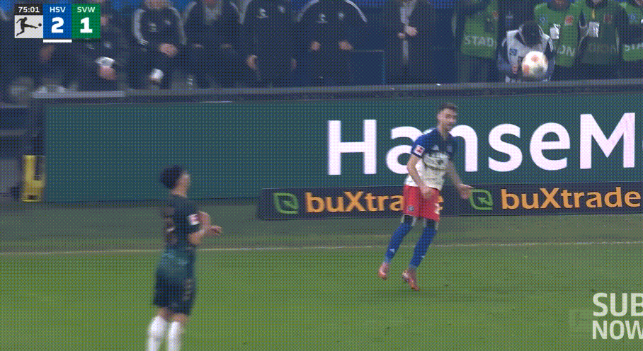 25-26賽季,德甲聯(lián)賽第13輪,漢堡在主場迎戰(zhàn)不萊梅。第75分鐘,漢堡任意球機會。18歲的小將武什科維奇在禁區(qū)內(nèi)靈巧地用腳后跟將皮球磕進球門,這粒精妙的蝎子擺尾進球也幫助漢堡笑傲北方德比。